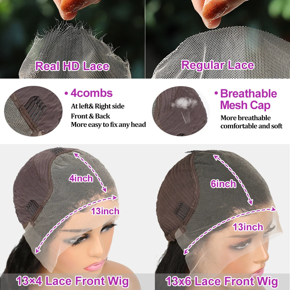 40 Inch Loose Deep Wave 13x4 13x6 HD Transparent Human Hair Wig 250 Density Brazilian Water Curly Nature Wave Lace Frontal Wigs